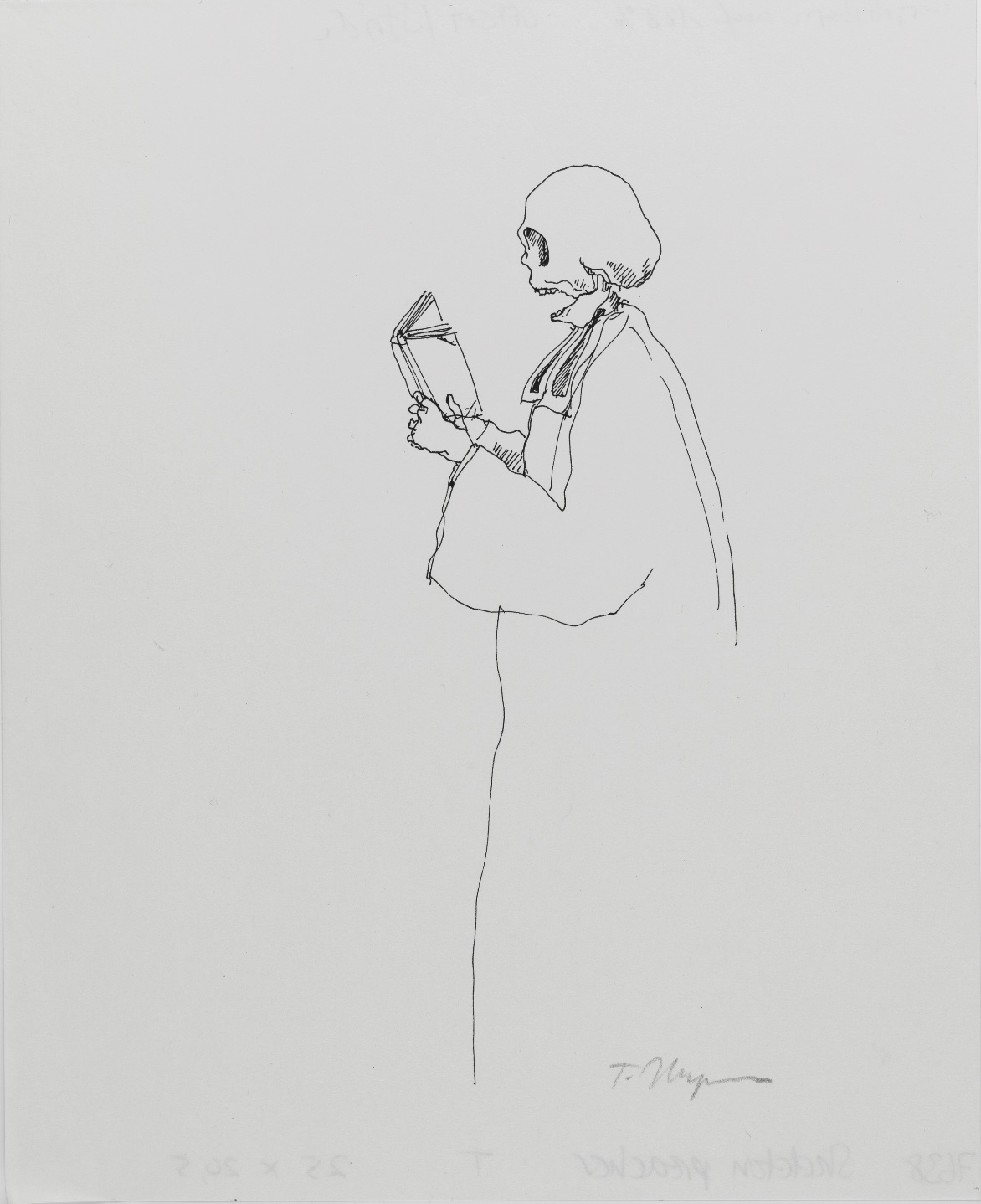 Ink and coloured ink washes, felt pen and coloured pencils on white paper